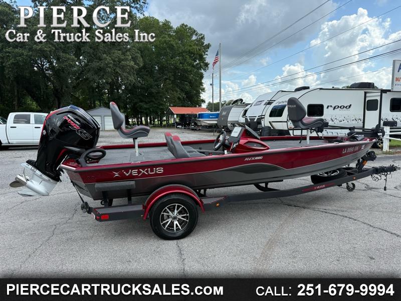 YOU ARE VIEWING A 2022 VEXUS AVX 1880. IT IS EQUIPPED WITH A 115 MERCURY PRO XS COMMAND THRUST FOUR STROKE MOTOR (ONLY 8 HRS!). STAINLESS STEEL 3 BLADE PROP. HYDRAULIC STEERING. REAR LADDER. MINN KOTA ULTREX 80 LBS THRUST 24 VOLTS I-PILOT BLUETOOTH TROLLING MOTOR. GARMIN DEPTH FINDERS. DUAL PRO THREE 6 AMP BANKS ON BOARD BATTERY CHARGER. BATTERY ON/OFF SWITCH. LIVEWELL. BOAT BUCKLE TIE DOWNS. SINGLE AXLE CUSTOM TRAILER WITH SWING AWAY TONGUE. SPARE TIRE. PLENTY OF STORAGE. STILL HAS FACTORY WARRANTY ON MOTOR!! WE ARE LOCATED AT 5625 HWY 43 SATSUMA, AL 36572. IF INTERESTED GIVE US A CALL AT 251-679-9994 OR FOR MORE OPPORTUNITIES VISIT OUR WEBSITE AT WWW.PIERCECARTRUCKSALES.COM.